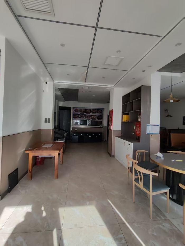两个小区商业街,中心位置,小区门口,对面质检中心,附近大学,中小连读学校,居民密集,消费能力强,室内2个中央空调,排风管道,带桌椅,租金合理,具体面议。