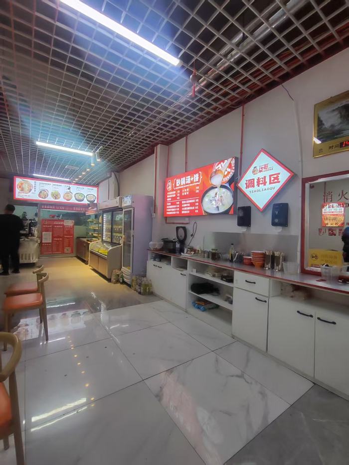 两个小区门口商业街,居民必经之路,高层环绕,年轻人居多,带外卖平台,120平,新装修,中央空调,房费4.2万/年,(包采暖物业),含9个月房费,兑价便宜。