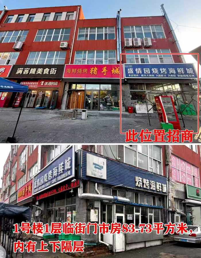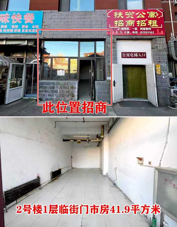1.门市房:1号楼一层日杂大厅(50-1000平)多种业态招商,1号楼一层83.73㎡、2号楼一层约47.3㎡,可做餐饮、水果蔬菜等。