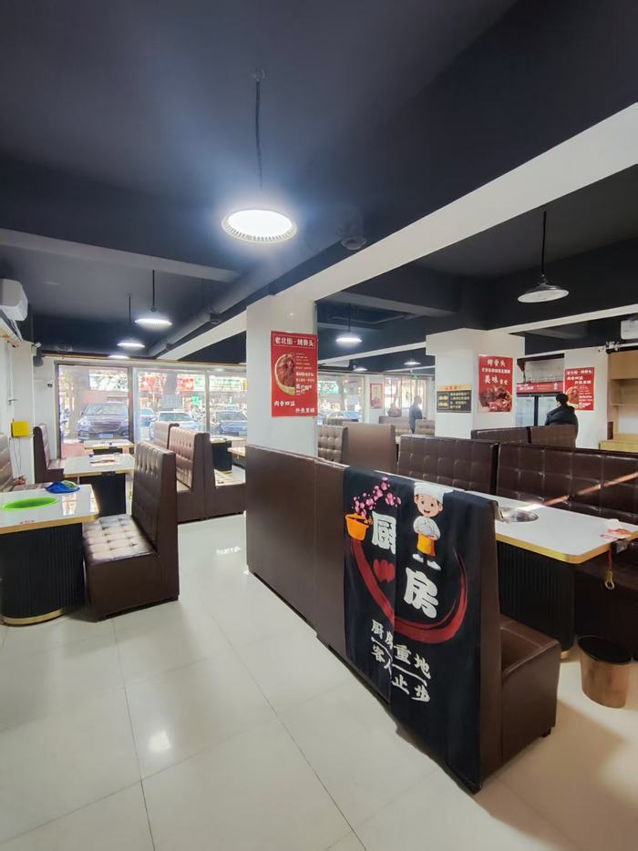 餐饮一条街,成熟商圈,商铺众多,居民密集,客源不愁,全一层,18米大门脸,140平,房费7.5万/年,包采暖物业,含8个月房费,带70平寝室库房,排烟系统,设备齐全,接手就干,价格面议。