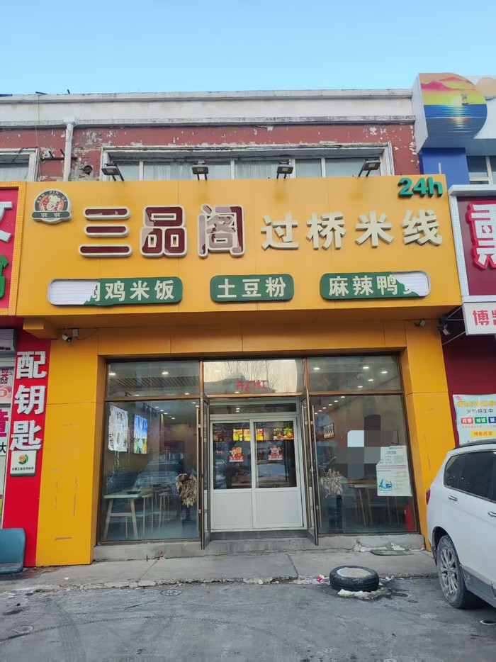 两个小区门口商业街,中心位置,把小区门口,周围工厂,洗浴,网吧,大型综合市场,100多栋楼,有学校,品牌店众多,居民密集,客流量大,适合多种经营,现经营:三品阁米线,黄焖鸡米饭,可加项,改项,兑价便宜。