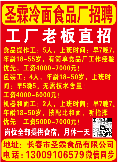 圣霖冷面食品厂招聘