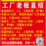 年龄18-55岁,有简单食品厂工作经验优先,工资4000-7000元!